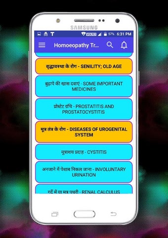 Questa applicazione è suddivisa in diverse categorie di malattie, tra cui problemi respiratori, malattie mentali, disturbi digestivi e condizioni della pelle. Ogni sezione fornisce informazioni sui rimedi omeopatici e sui regimi alimentari consigliati. L'app è progettata per aiutare gli utenti a gestire condizioni comuni e migliorare la loro salute complessiva, con un focus sulla cura olistica e sulla potenziamento del sistema immunitario.
